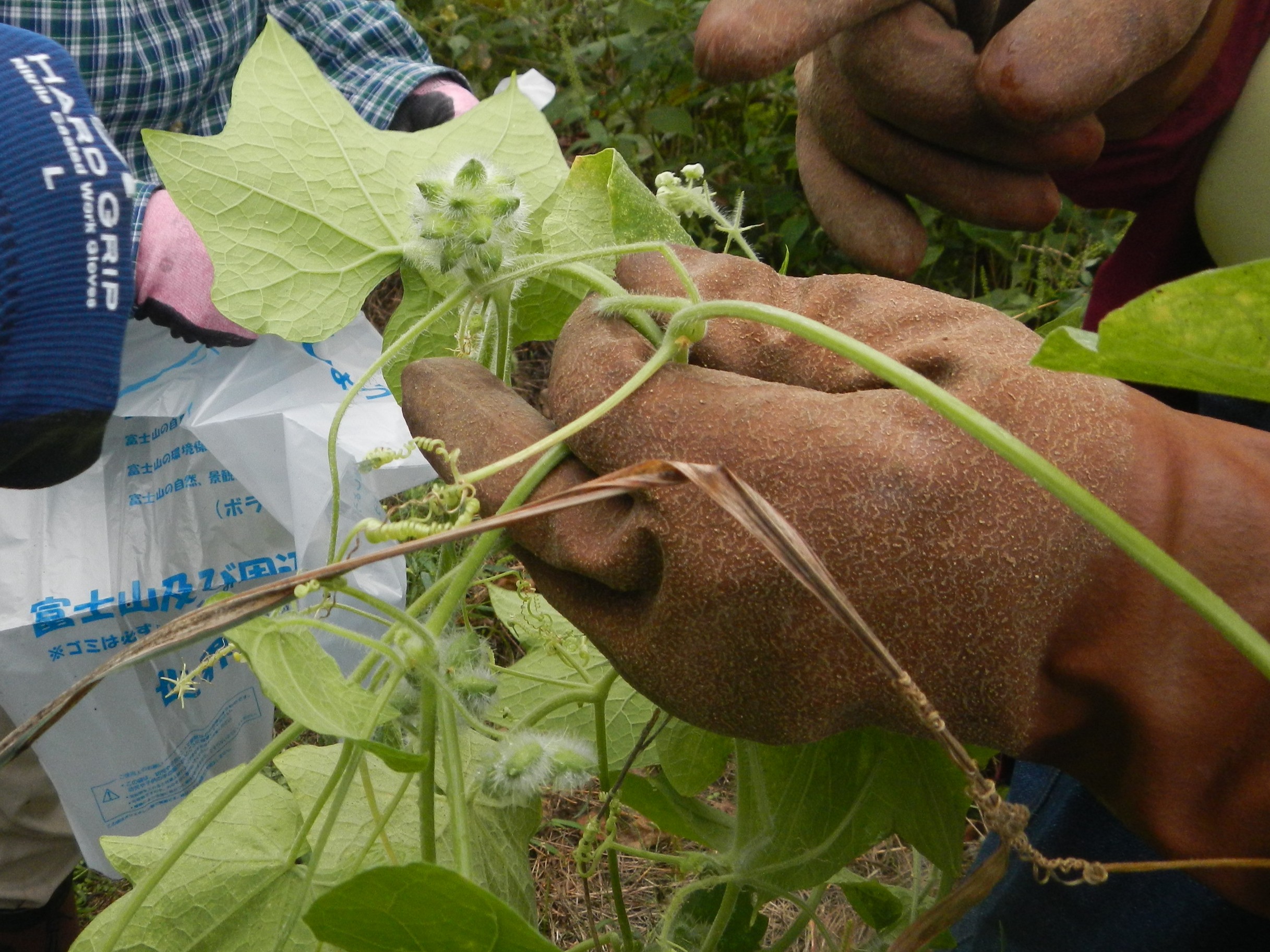 今回実施する場所は、今年既に2回の回収活動を行っているとのことですが、新たに発芽したアレチウリが勢いよくツルを伸ばしておりました。すさまじいその繁殖力ゆえに「特定外来生物」に指定されていることを目の当たりに実感出来ました。