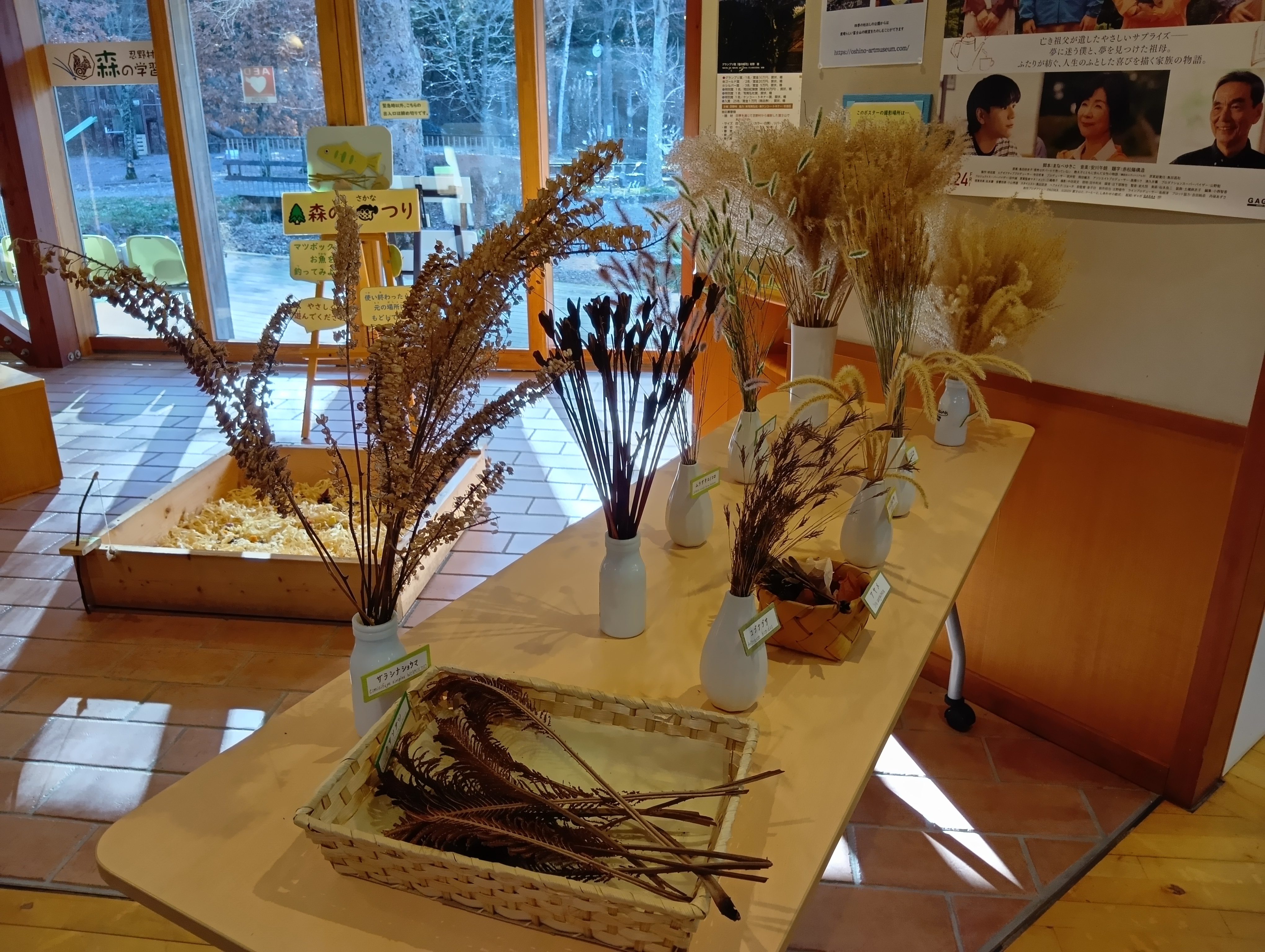 事前に準備いただいた沢山の自然素材にはすべて種名を添えて下さり、更には装飾用素材について説明された手作りの冊子を参加者全員に配布いただきました。
